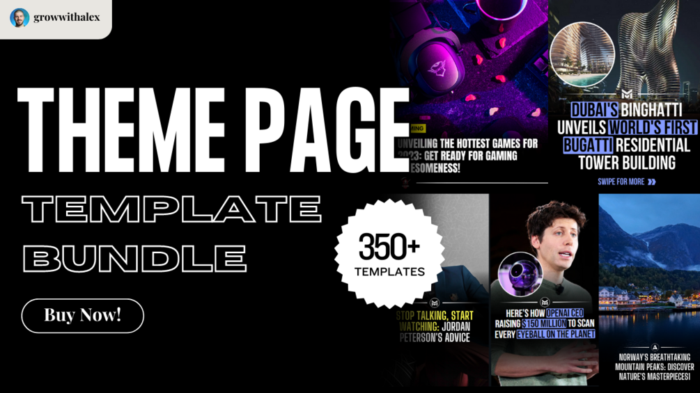 - How many templates are included in the bundle?The Theme Page Template Bundle includes a comprehensive collection of 350+ templates for social media posts, reel thumbnails, logos, highlights, and more. You'll have an extensive range of options to choose from to suit your specific needs.